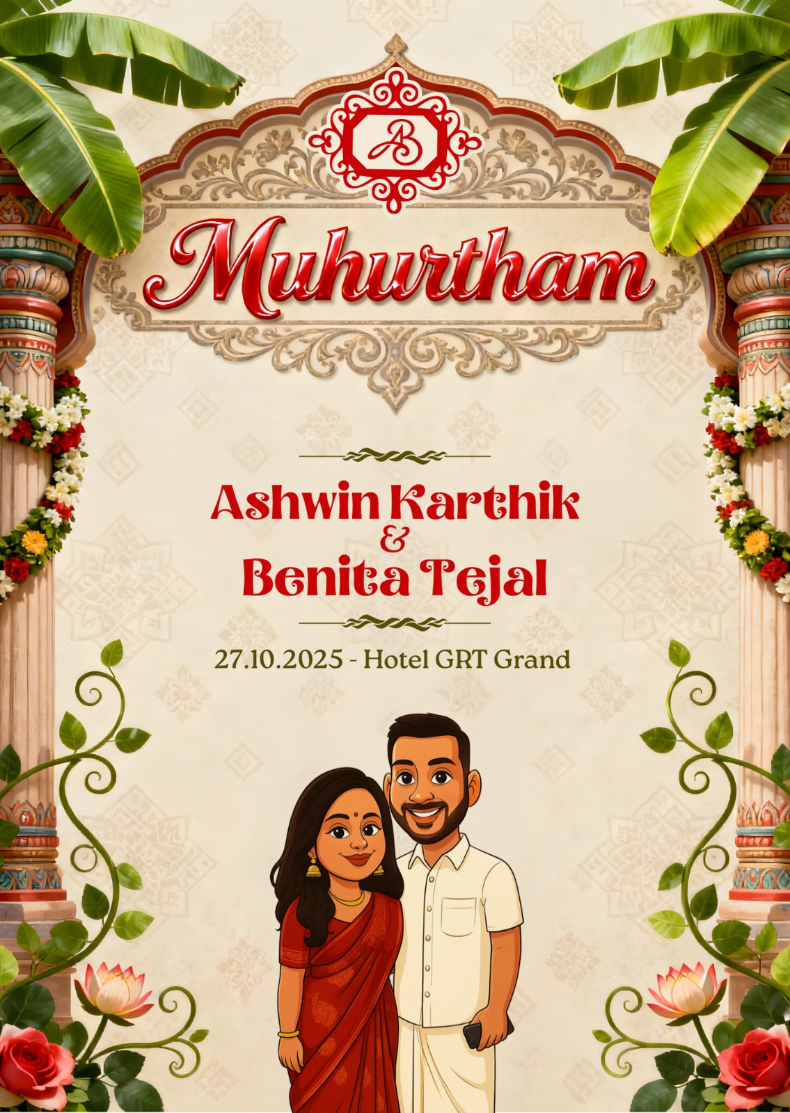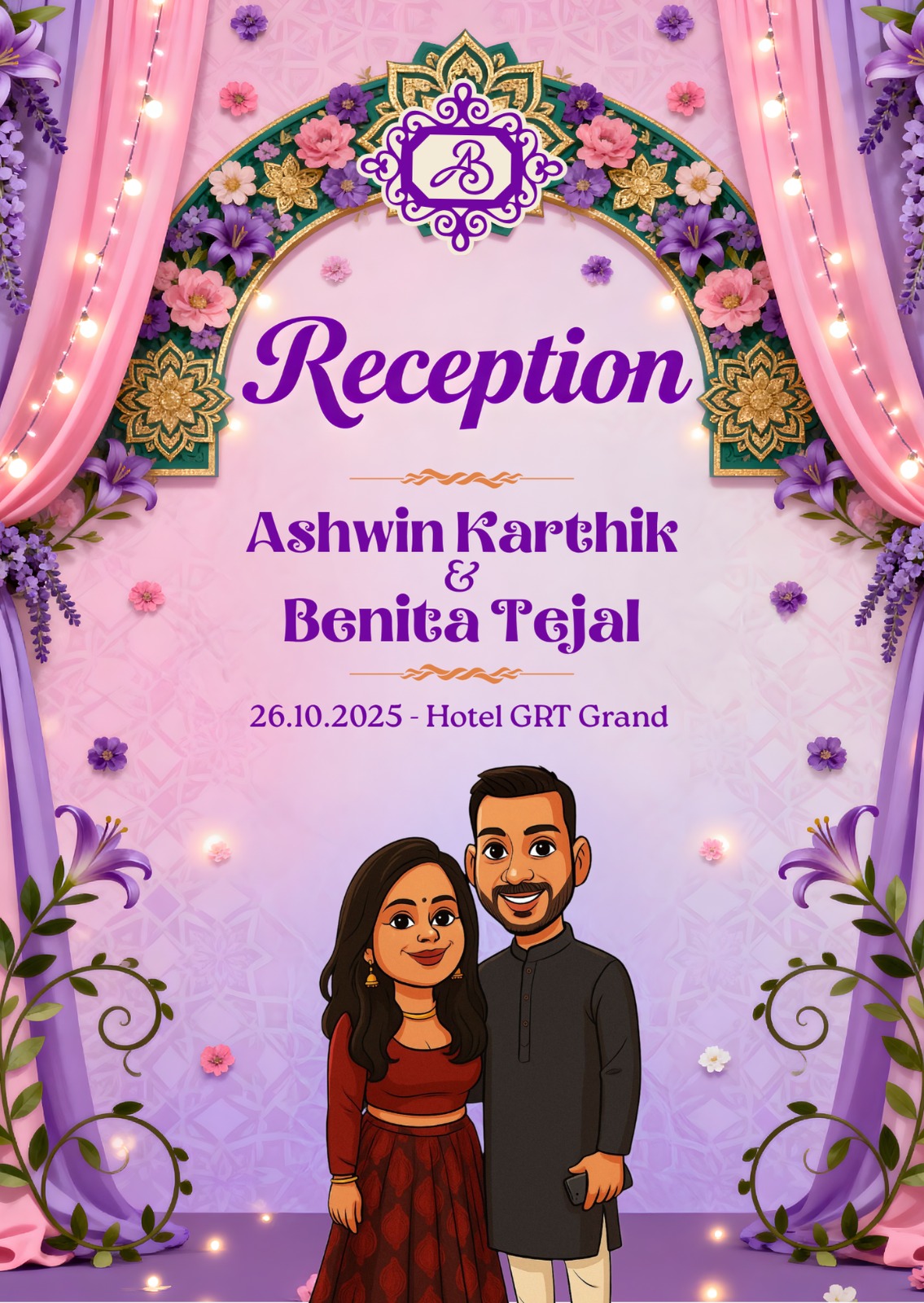 Be part of our special day from anywhere in the world! Join us to witness every joyous moment of Ashwin & Benita’s wedding live, in real time.